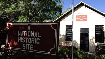 Before the white man, there were the Utes. The Saguache County Museum (pronounced Sa-watch) occupies an adobe building partially constructed in 1870. It has functioned over the years as a school, temporary courthouse, and a residence for jail-keepers and their families. The old jail, built in 1908, is an adobe building finished with stucco. The interior has a sheriff's office, a women's or V.I.P. cell, and a large room or "bull pen" with an escape-proof maximum security "cage". This jail was used until 1958. Original graffiti done by prisoners still adorns the walls.